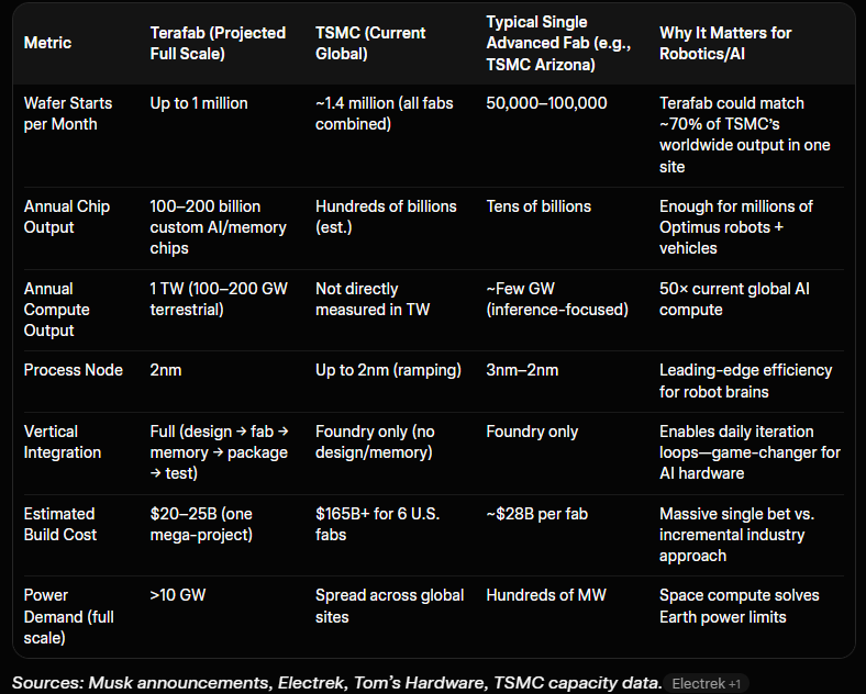 A humanoid robot isn’t a smartphone or even a car. Optimus needs real-time vision, planning, balance, and decision-making in unstructured environments. That demands orders of magnitude more AI inference chips per unit than today’s consumer devices. Musk has been clear: existing supply chains (even from partners like TSMC and Samsung) simply can’t scale fast enough for the billions of robots and AI systems his companies envision.